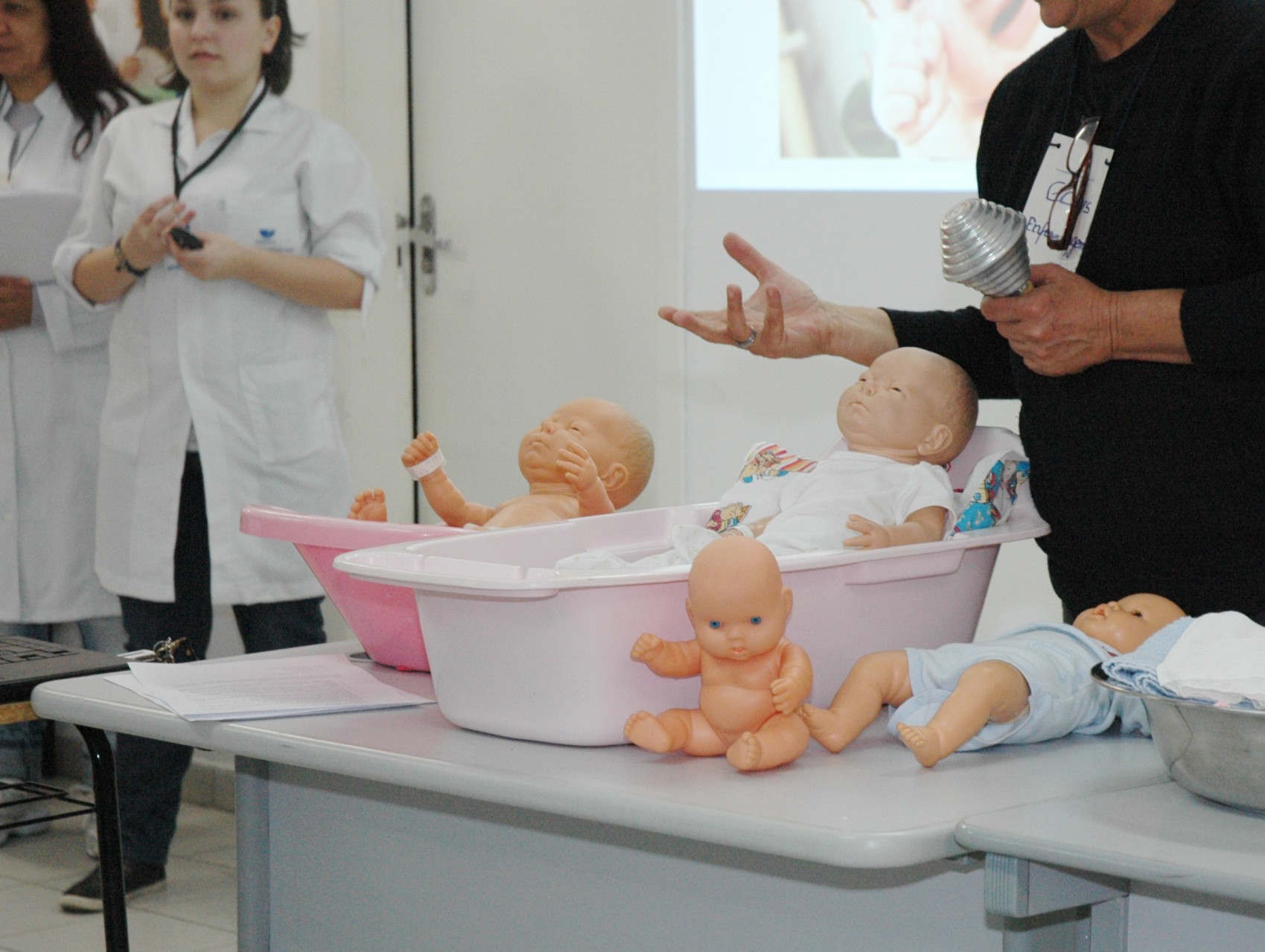 Temos uma equipe qualificada que acompanham a mãe, instruindo nos cuidados iniciais, como a higiene, banho, tratamento do coto umbilical, roupas, amamentação. Além de auxiliar nos cuidados com o recém-nascido, curativos pós-operatórios daquela mãe que fez cesariana/parto normal, como também, cuidados com a mama, horários de amamentação, dentre outros.